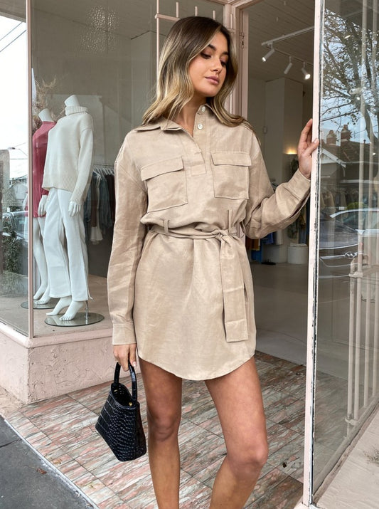 The Street Form Smart Shirt Dress in Natural from Third Form is the easy to wear classic silhouette for your transeasonal Coco closet.