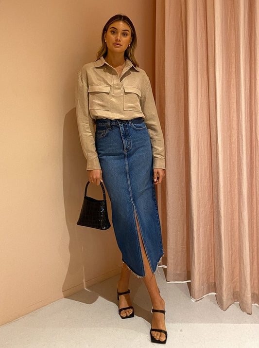 Embrace the versatility of this shirt pairing with the Nobody Avery Skirt in Waterfall.