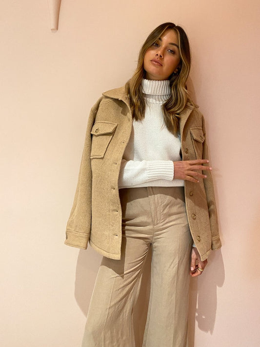 Wrap yourself day to night in the ever indulgent Trucker Wool Jacket in Oat from Third Form.