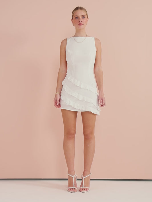 Isabelle Quinn Tina Ruffle Mini Dress in Ivory