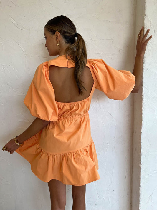 Sweeten Summer occasions with the Jaffa hue and babydoll silhouette of the Alita Dress from TOJHÀ.