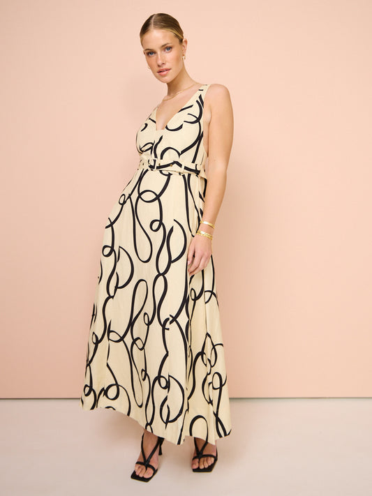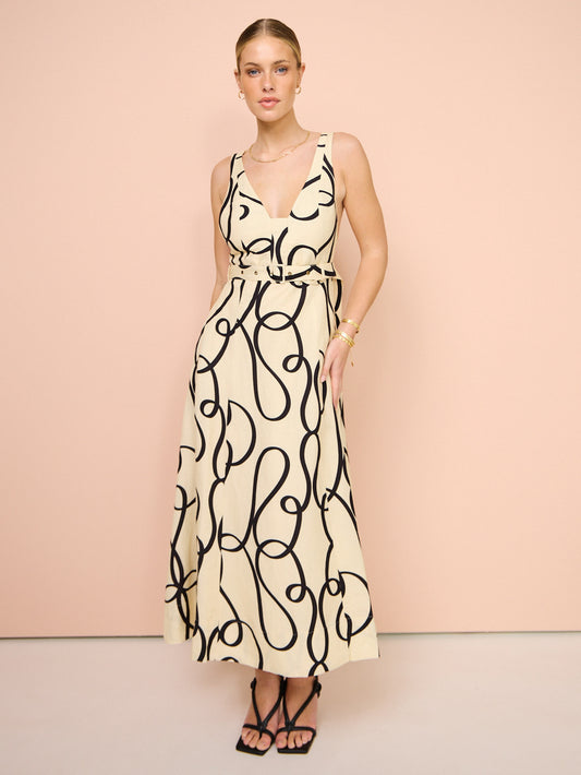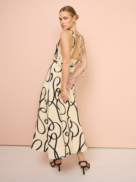 The Vietri Plunged Panelled Midi Dress in Bone/Black from Shona Joy epitomises sophistication and contemporary elegance.