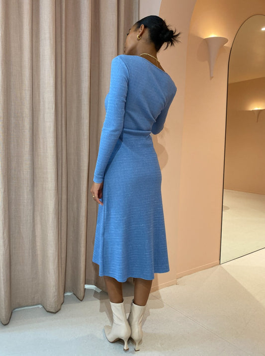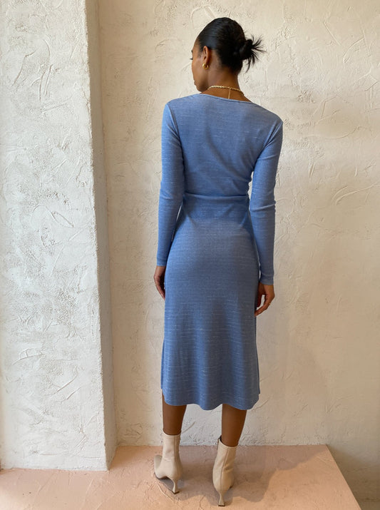 The Viktoria and Woods Aperol Dress in Thunder Marl celebrates sophisticated styling in an understated blue hue.
