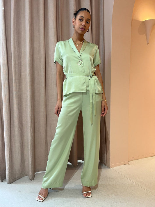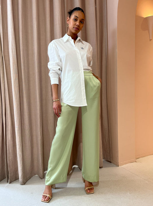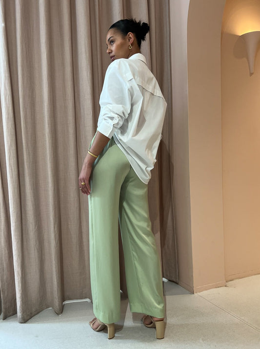 Loved for their sweet green hue and style versatility these luxurious pants can be styled for relaxed occasions or paired with the matching shirt for elevated soirees.