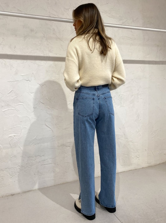 Cut from a mid-weight denim and designed with a hight waist and full length straight leg, these jeans feature a subtle side seam split detail to add a little contemporary edge to your rotational wardrobe.