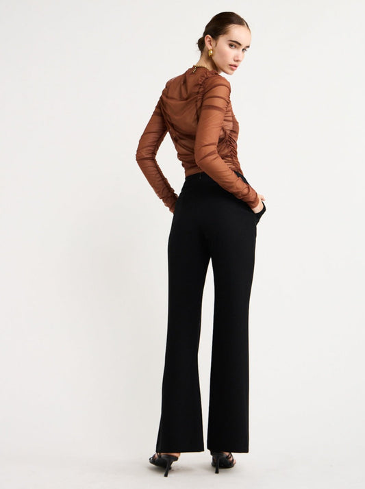 Crafted from a luxe triacetate fabric with a subtle sheen, these stylish bootleg trousers feature a grown-on waistband, angled side pockets, and an invisible zipper at the back.