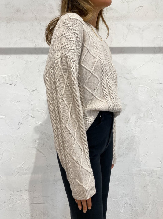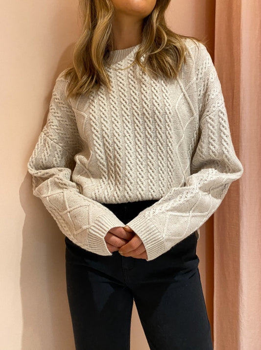We love the delicate cable knit details of the Viktoria and Woods Impala Knit in Oat marl.
