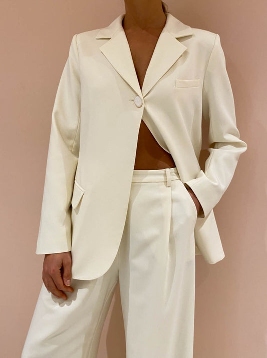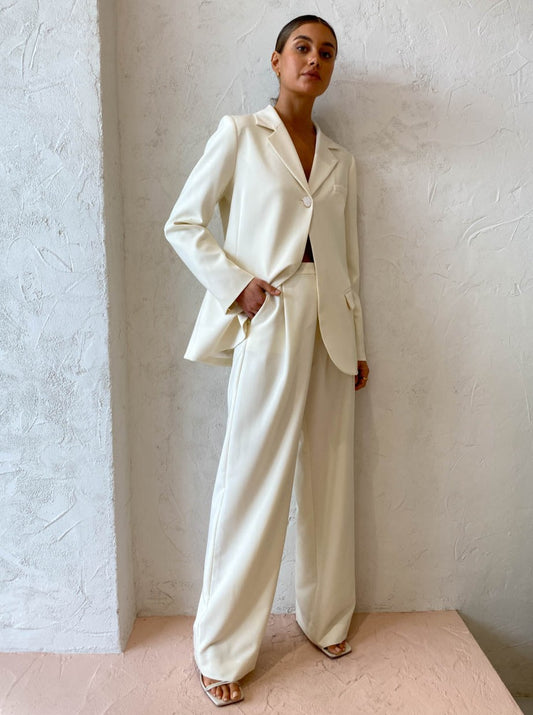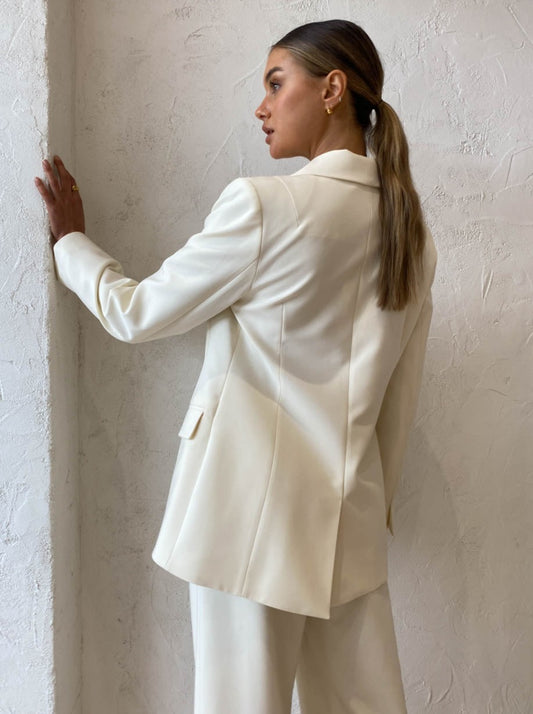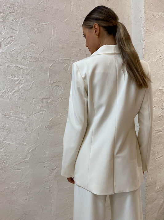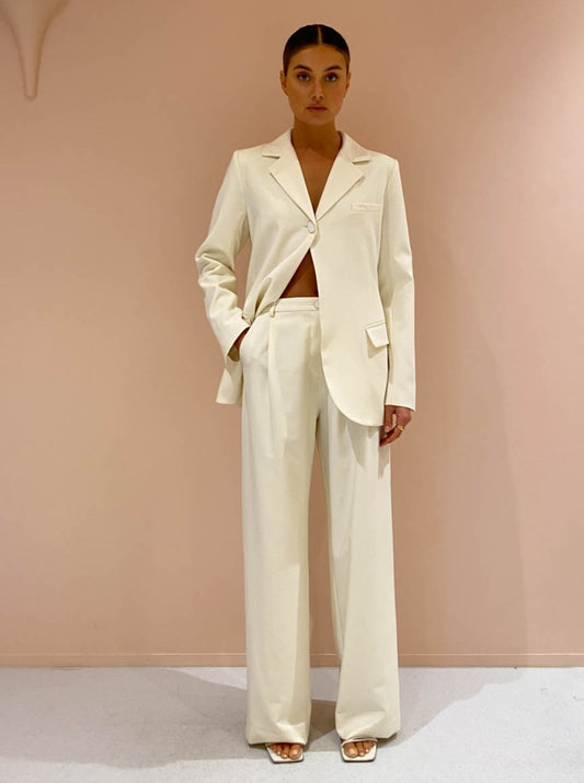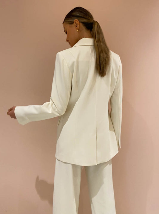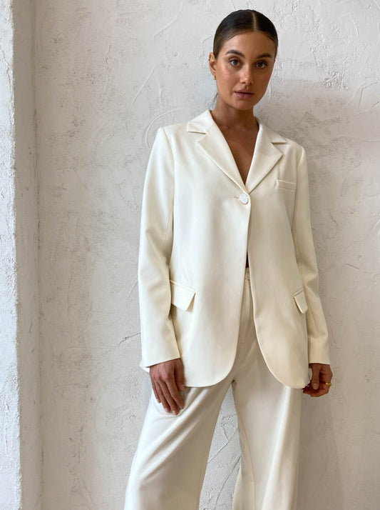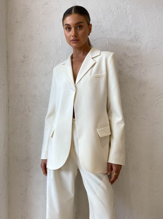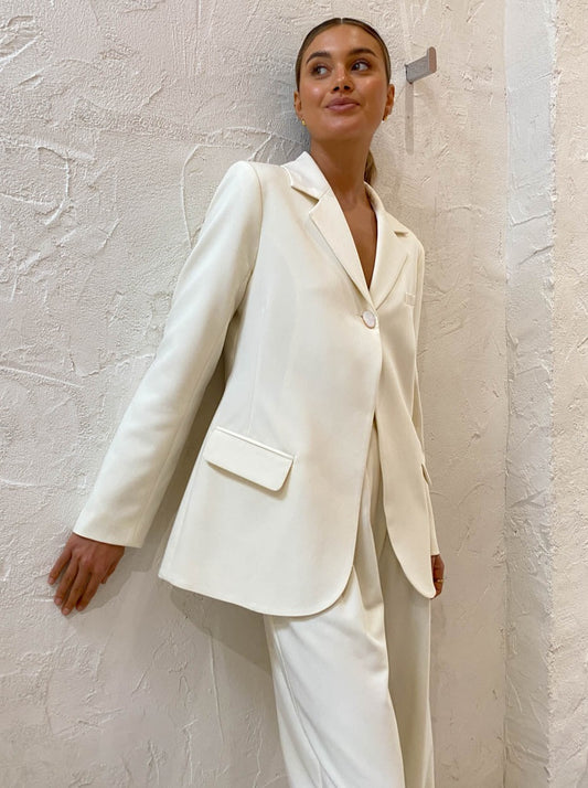 Add an elegant addition to outerwear with the refined Journeyman Blazer in Winter White from Viktoria & Woods.