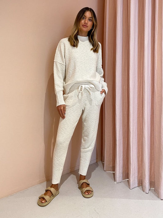 Crafted from a luxurious soft cotton boucle knit and designed with a slim silhouette in mind, these luxe track pants are the perfect piece for adding considered comfort to any Coco off-duty wardrobe.