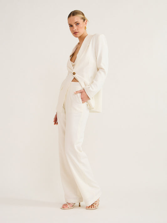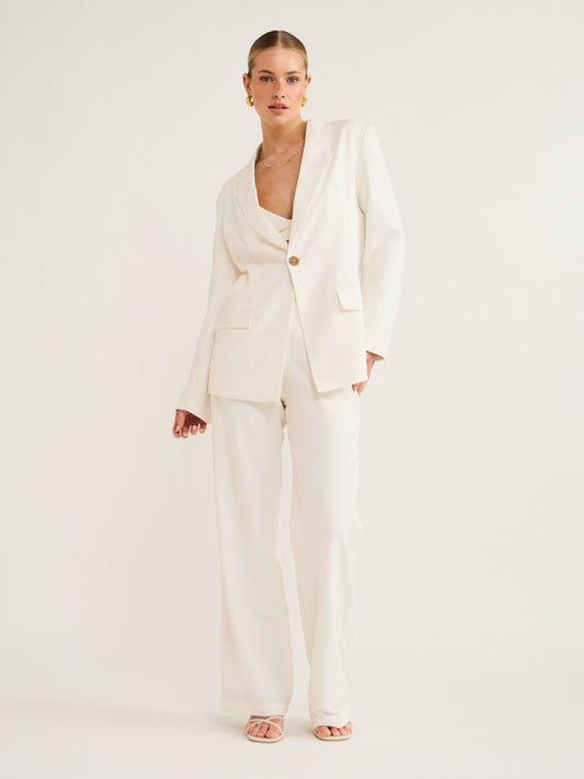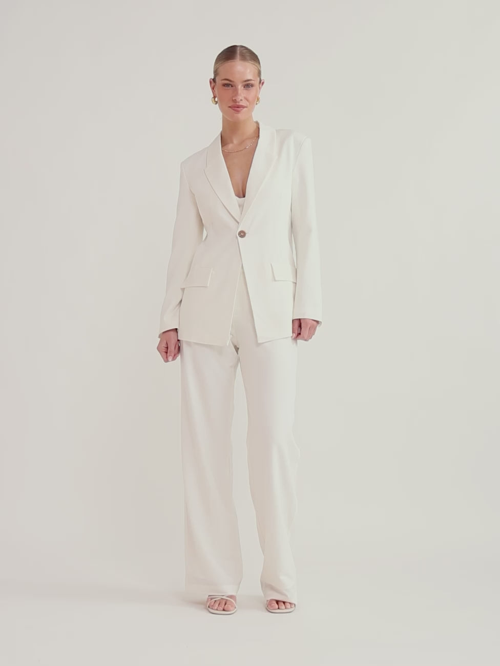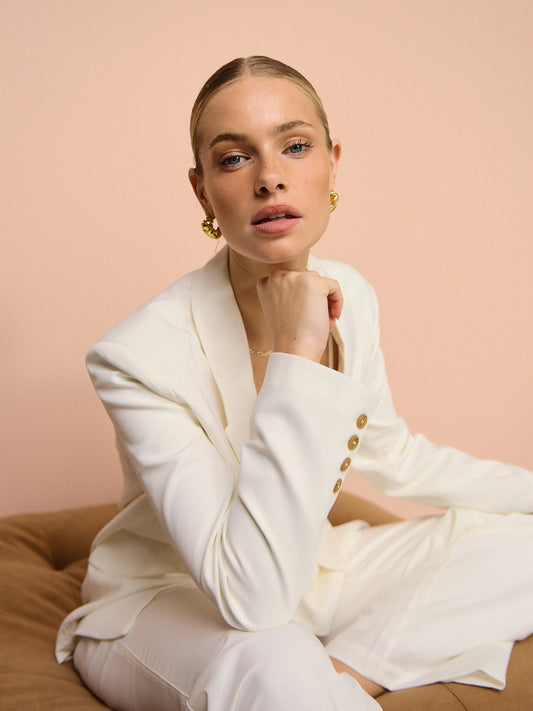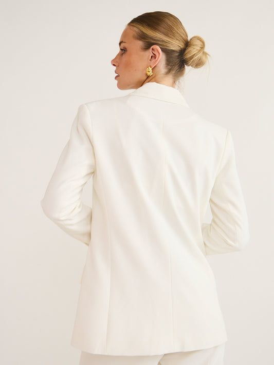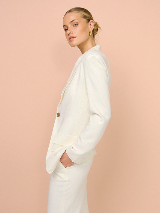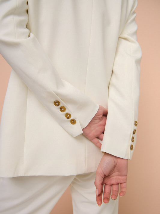 This Wool Classic Blazer in Cream by ROMY is the perfect addition to any ensemble.